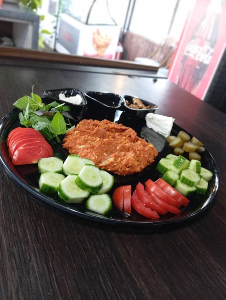 محتویات پنیر خیار گوجه خامه عسل گردو و به خواست شما املت یا نیمرو..