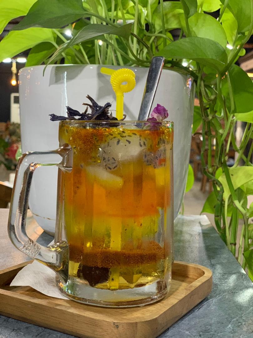 میکس تخم شربتی و خاکشیر با سیروپ سکنجبین و بهار نارنج همراه با گل و ...